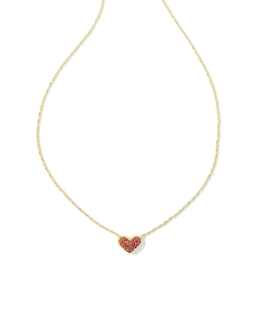 Ari Pave Crystal Heart Necklace Gold Red Crystal