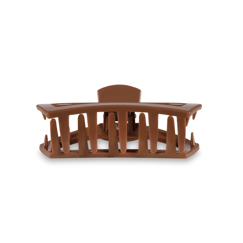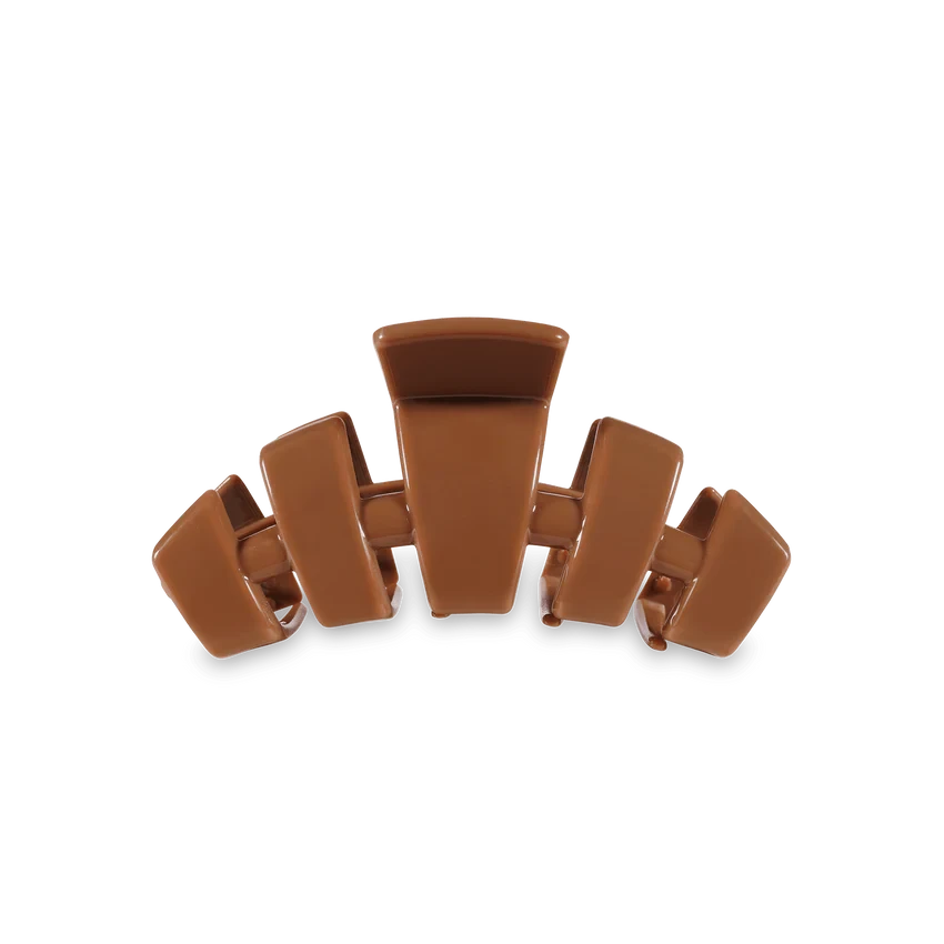 - This tiny brown clip is great for little kids, thin hair, and half-up styles!