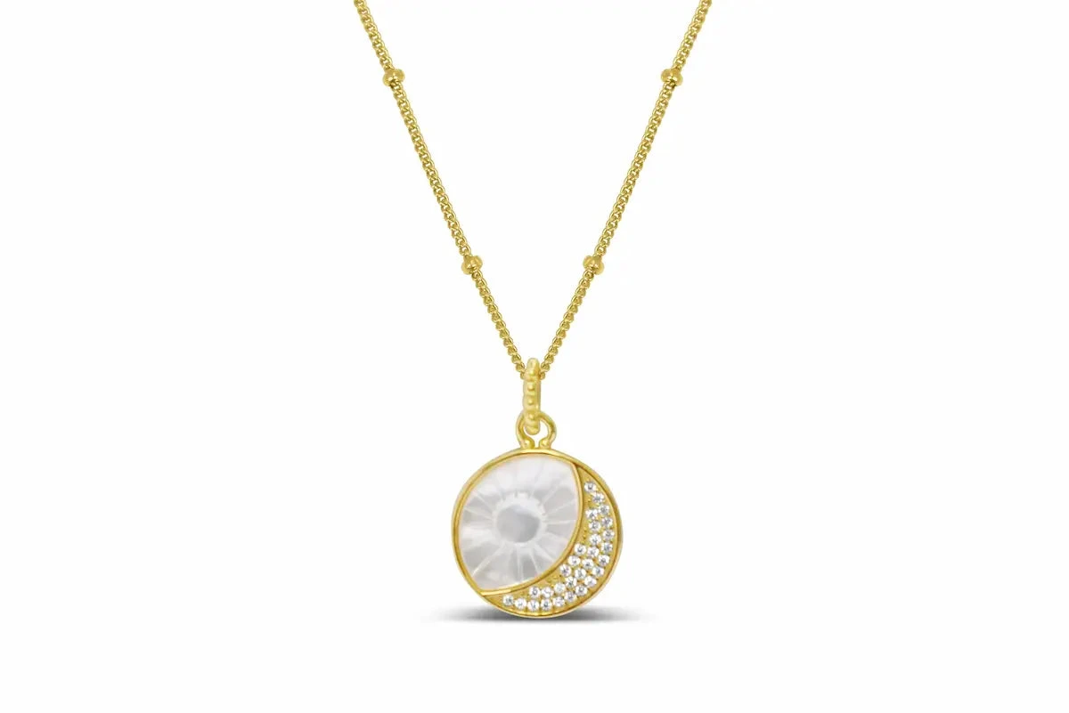 Stia Jewelry Classy Girls Wear Pearls – Mother of Pearl Sun and Moon Gold Necklace