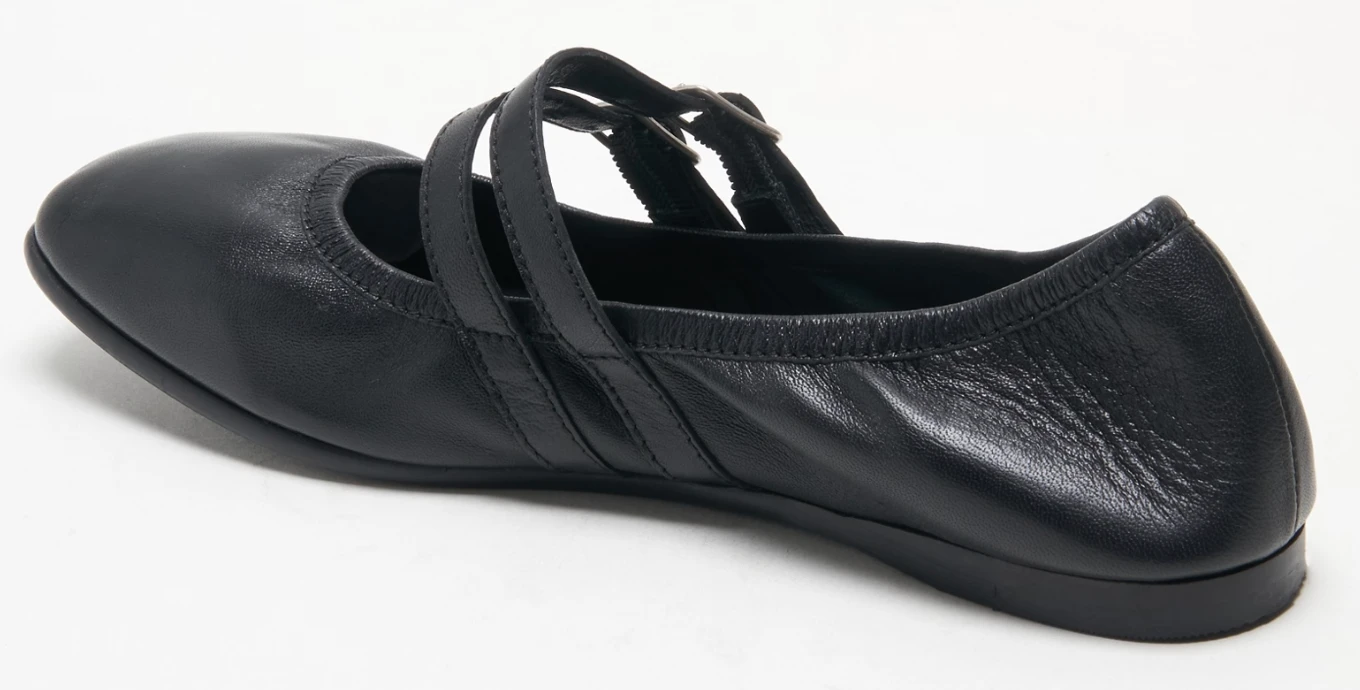 So cool and classic, these timeless ballet flats are featured in a soft leather fabrication and slip-on style with double-strap detailing and sleek square toe.