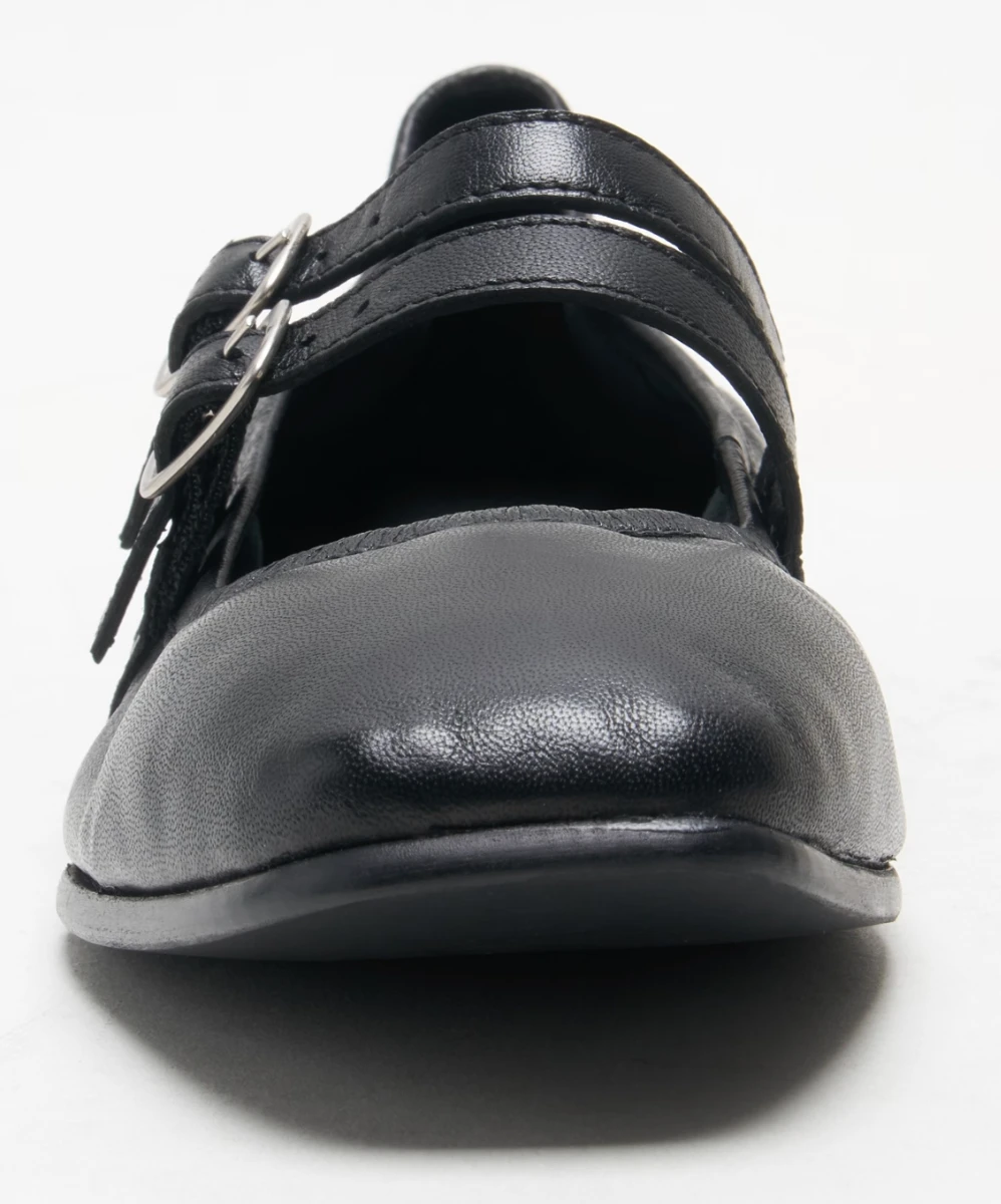 Features: Soft leather fabrication, durable rubber outsole, flat heel, square toe, lined footbed, double-strap detail with adjustable buckles, elasticated detail for an easy on and off.