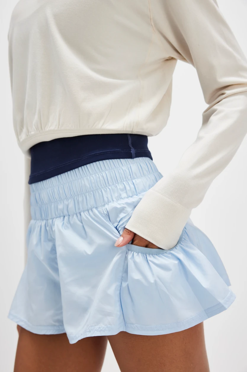 So flirty and fun shorts to spice up your workout attire, featured in a flowy style with a high-rise, smocked waistband and side pockets.