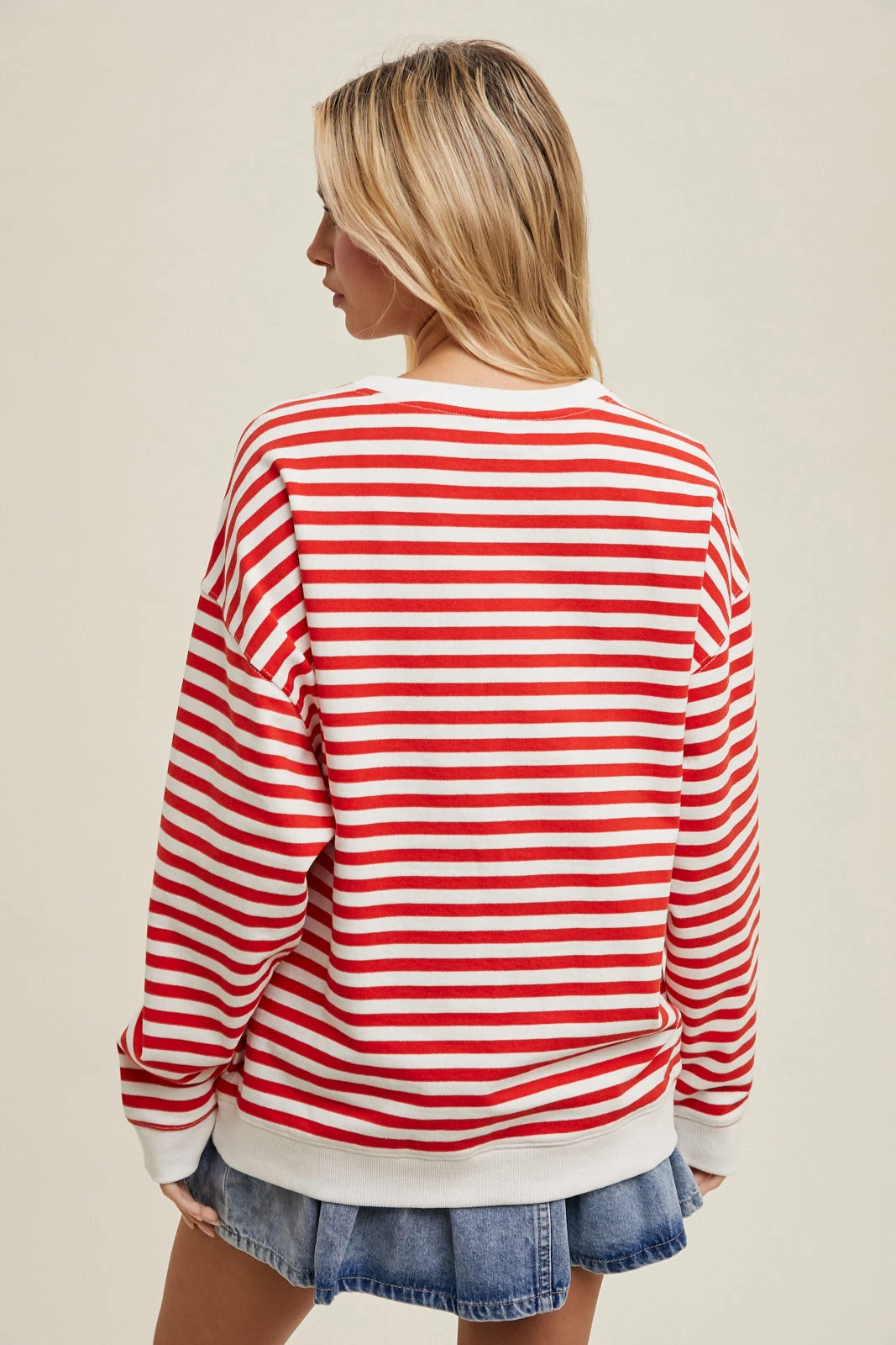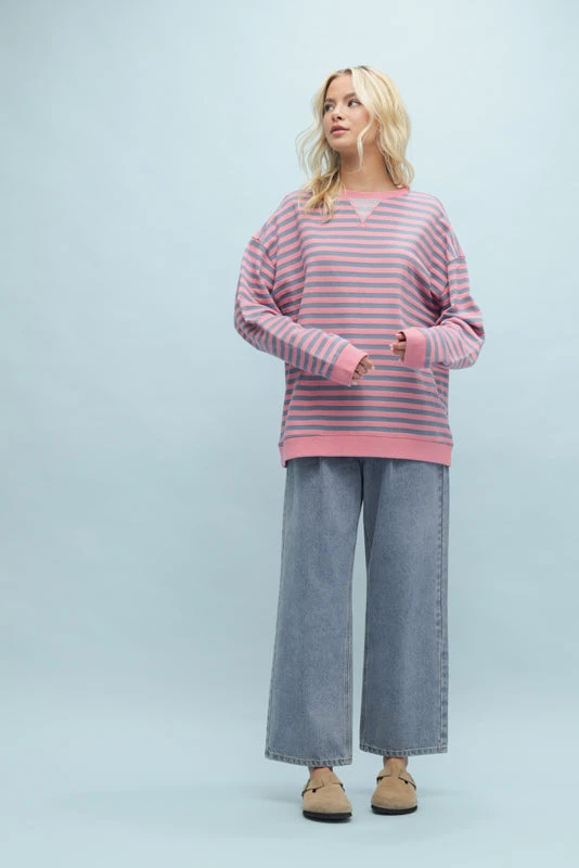 STRIPED OVERSIZED CREWNECK PULLOVER