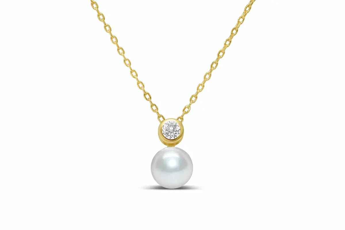Stia Jewelry Classy Girls Wear Pearls – Pearl Bezel CZ Necklace (GOLD)