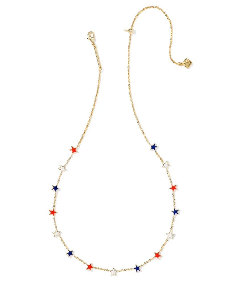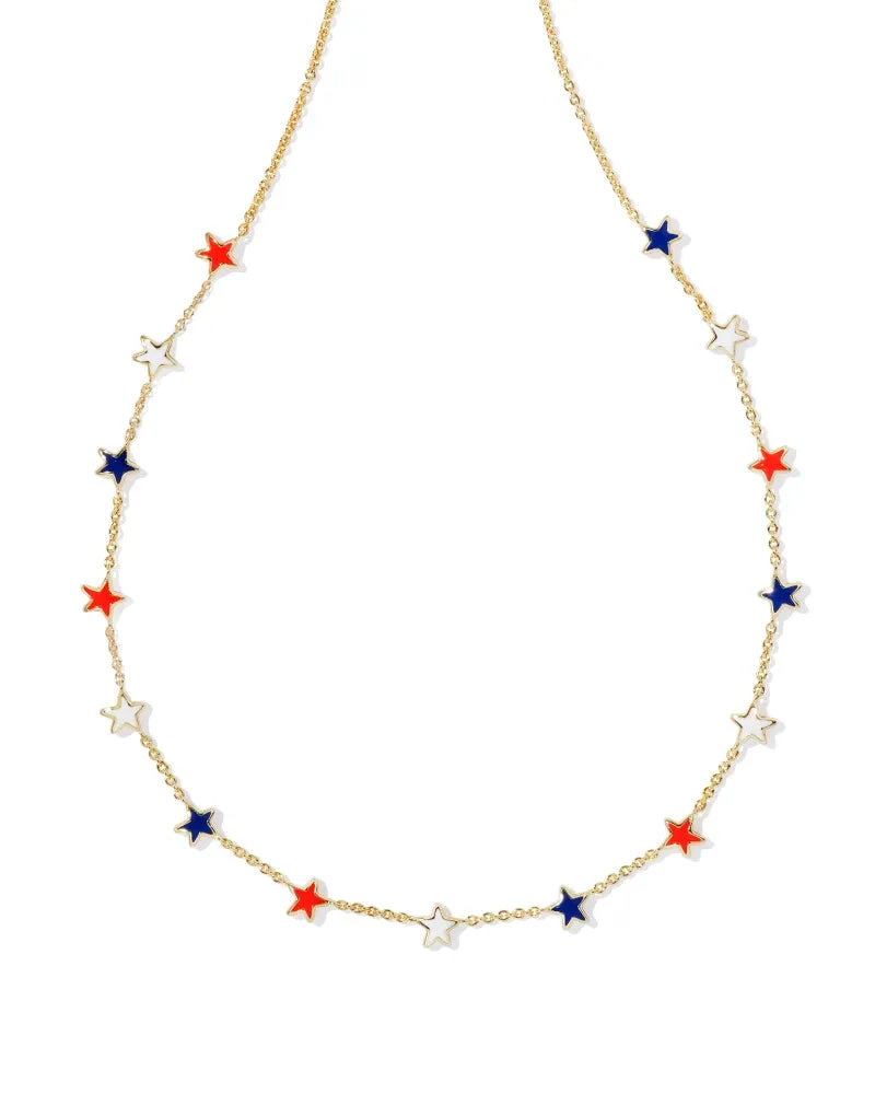 A stellar strand necklace that’ll make your layered look something to show off. The Sierra Gold Star Strand Necklace in Red White Blue Mix features red, white, and blue star shapes studded along a delicate chain. It’s subtle but full of texture, and so fun to pair with a pendant necklace.