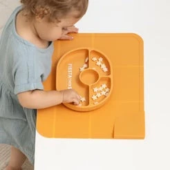 Introducing the first-of-its-kind foldable placemat with Table Guard technology. With a 2” flap to cover the front of the eating surface, this generously sized placemat keeps the entire eating area both clean and protected. Our nonslip silicone placemat was designed for on-the-go and at home.